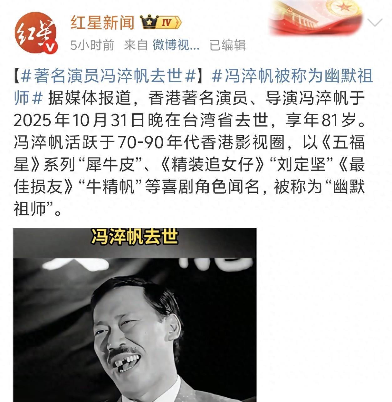 11月1日,81岁演员冯淬帆离世的消息刷屏全网。